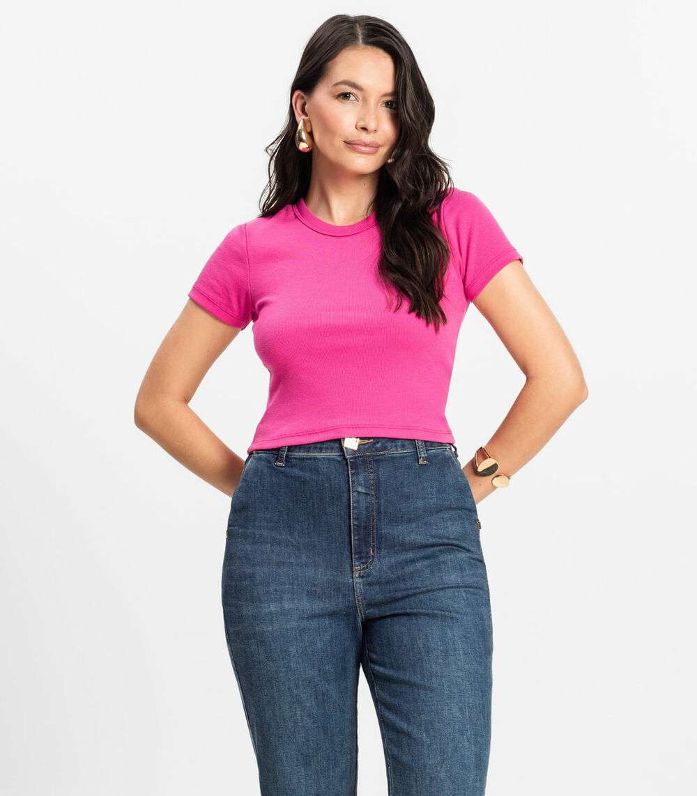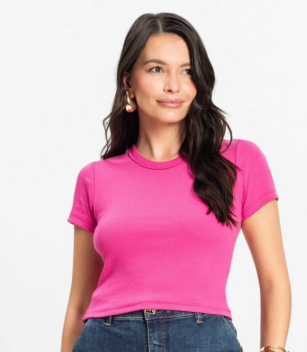 Blusa Cropped Ribana Básica Rovitex Rosa