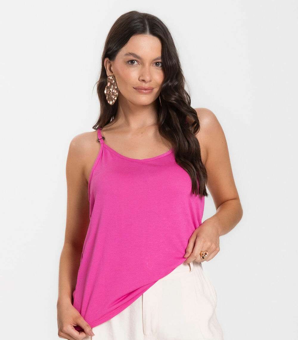 Blusa de Alça em Visco Tricot Infinita Cor Rosa