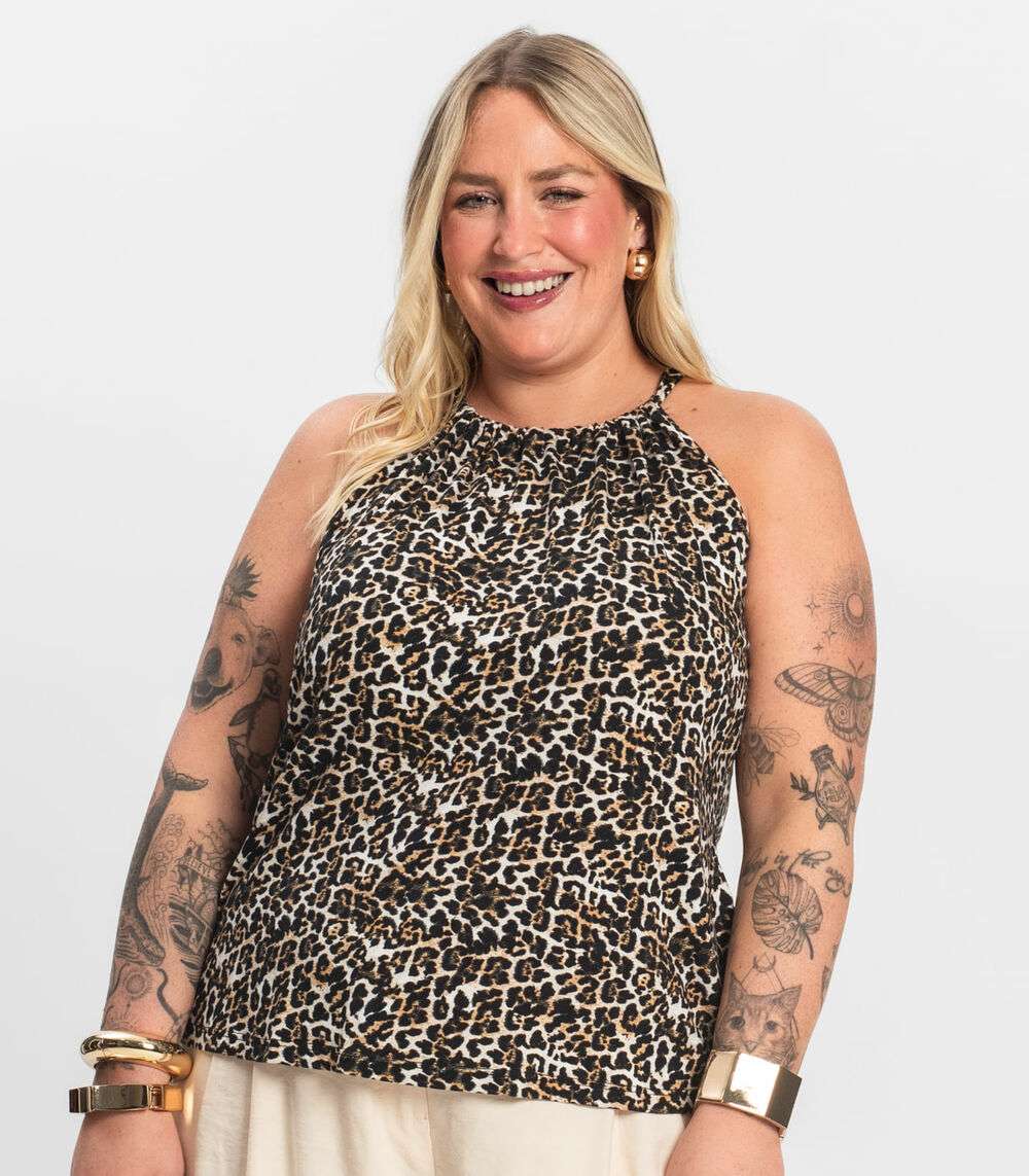 Blusa de Alça Plus Size Infinita Cor Bege