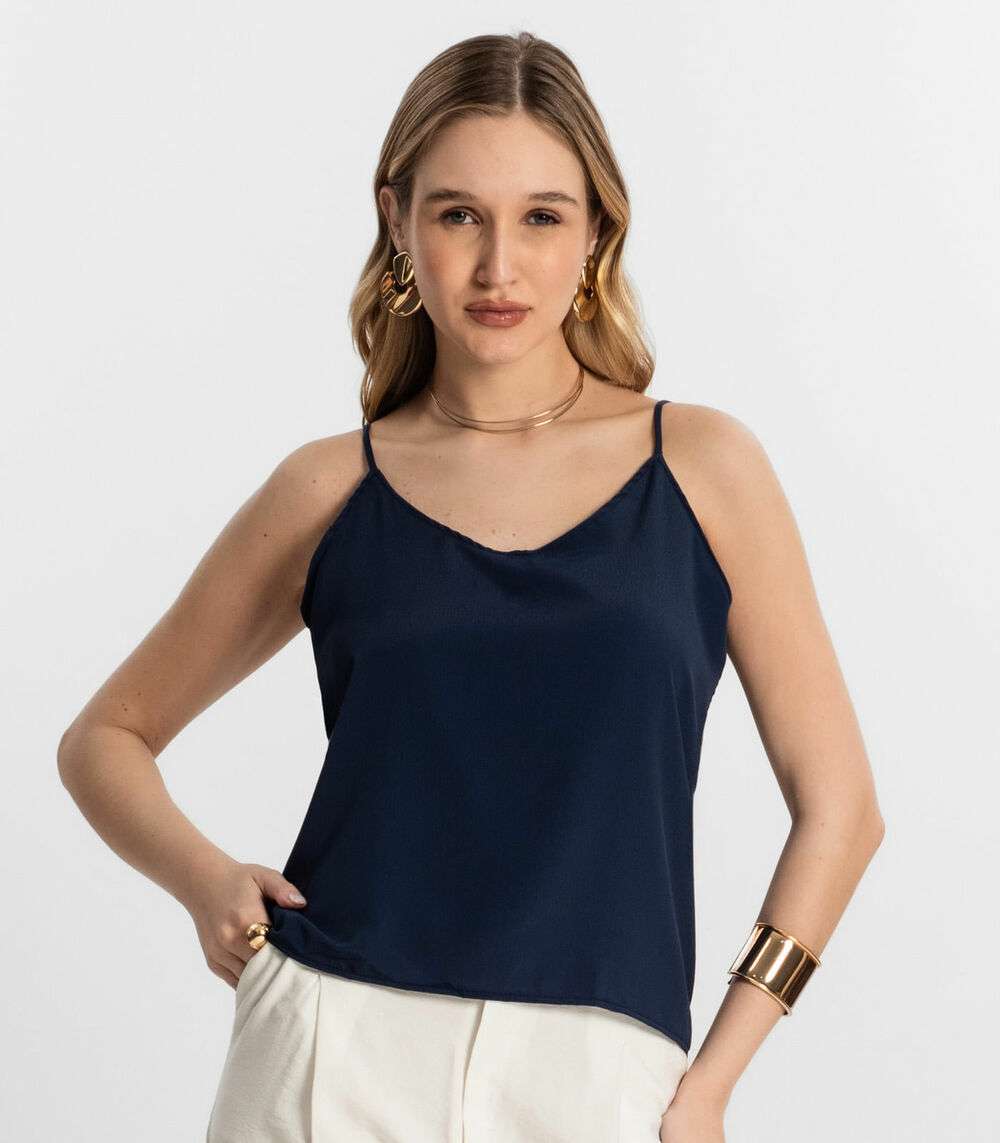 Blusa De Alça Tecido Crepe Marrocos Endless Azul