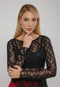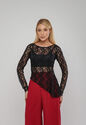 Blusa De Renda Assim?trica Manga Longa Preto Salvatore