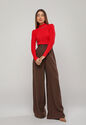 Blusa de Tricot Modal com Gola Alta e Manga Canelada Vermelho Salvatore