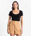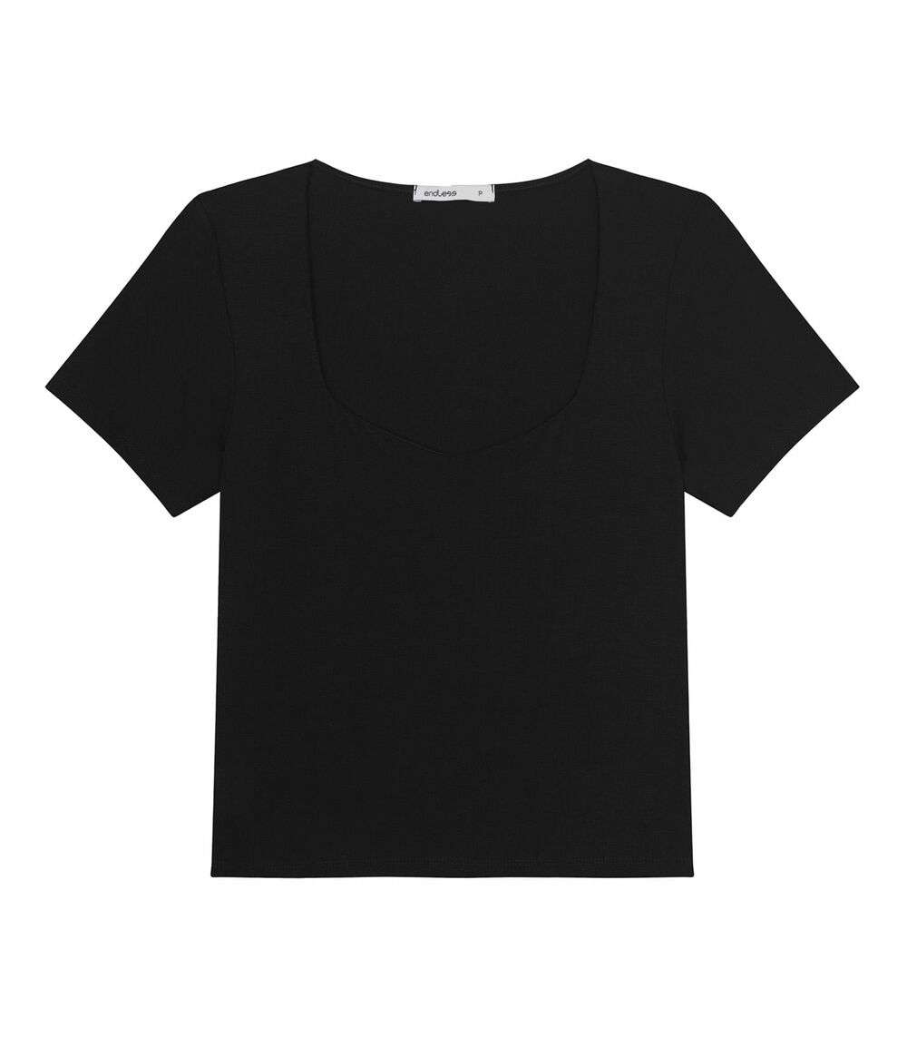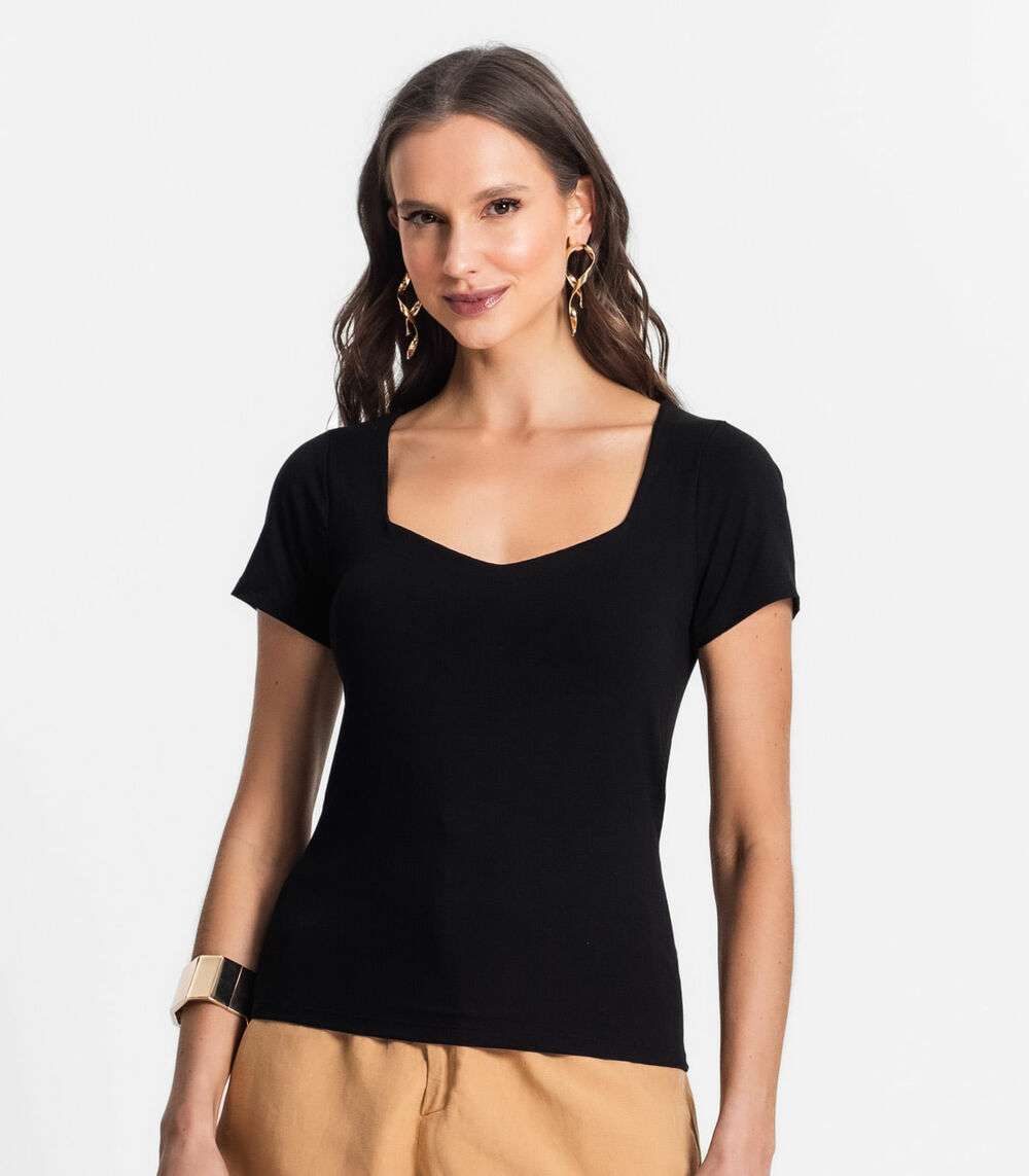 Blusa De Viscotorcion Com Decote Feminina Endless Preto