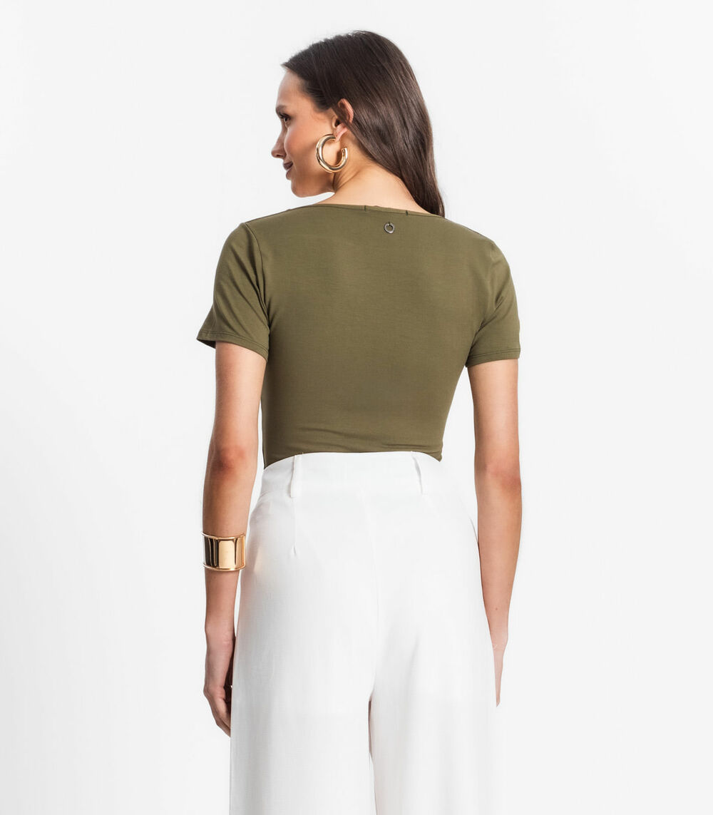 Blusa De Viscotorcion Com Decote Feminina Endless Verde