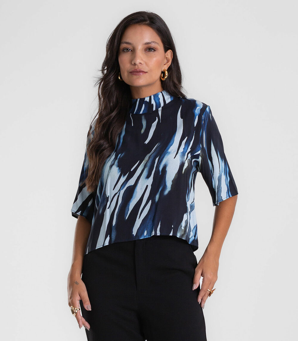 Blusa Endless Estampada Viscose Khyara Feminina Azul