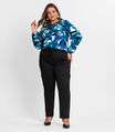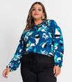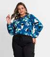 Blusa Estampada Manga Longa Plus Size Secret Glam Azul