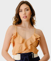 Blusa Feminina Babado Alças Finas Marisa Marrom