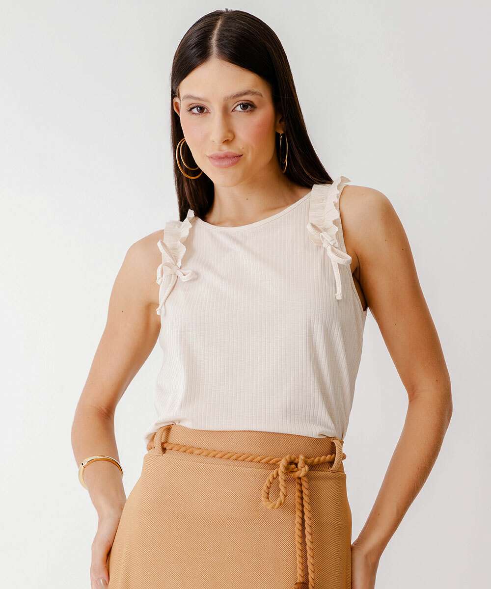 Blusa Feminina Canelada Babados Sem Manga Marisa