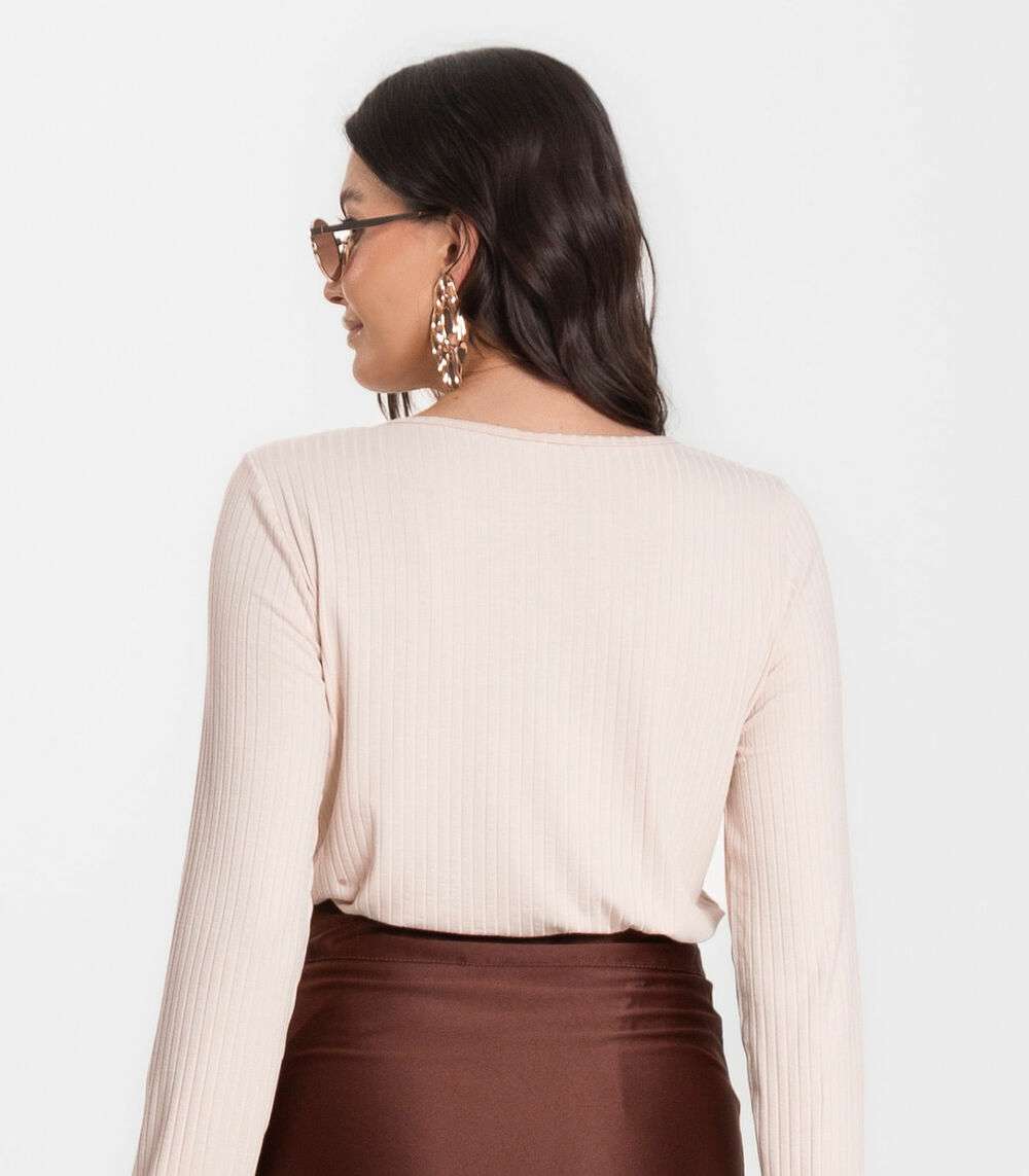 Blusa Feminina Canelada Com Manga Longa Rovitex Bege