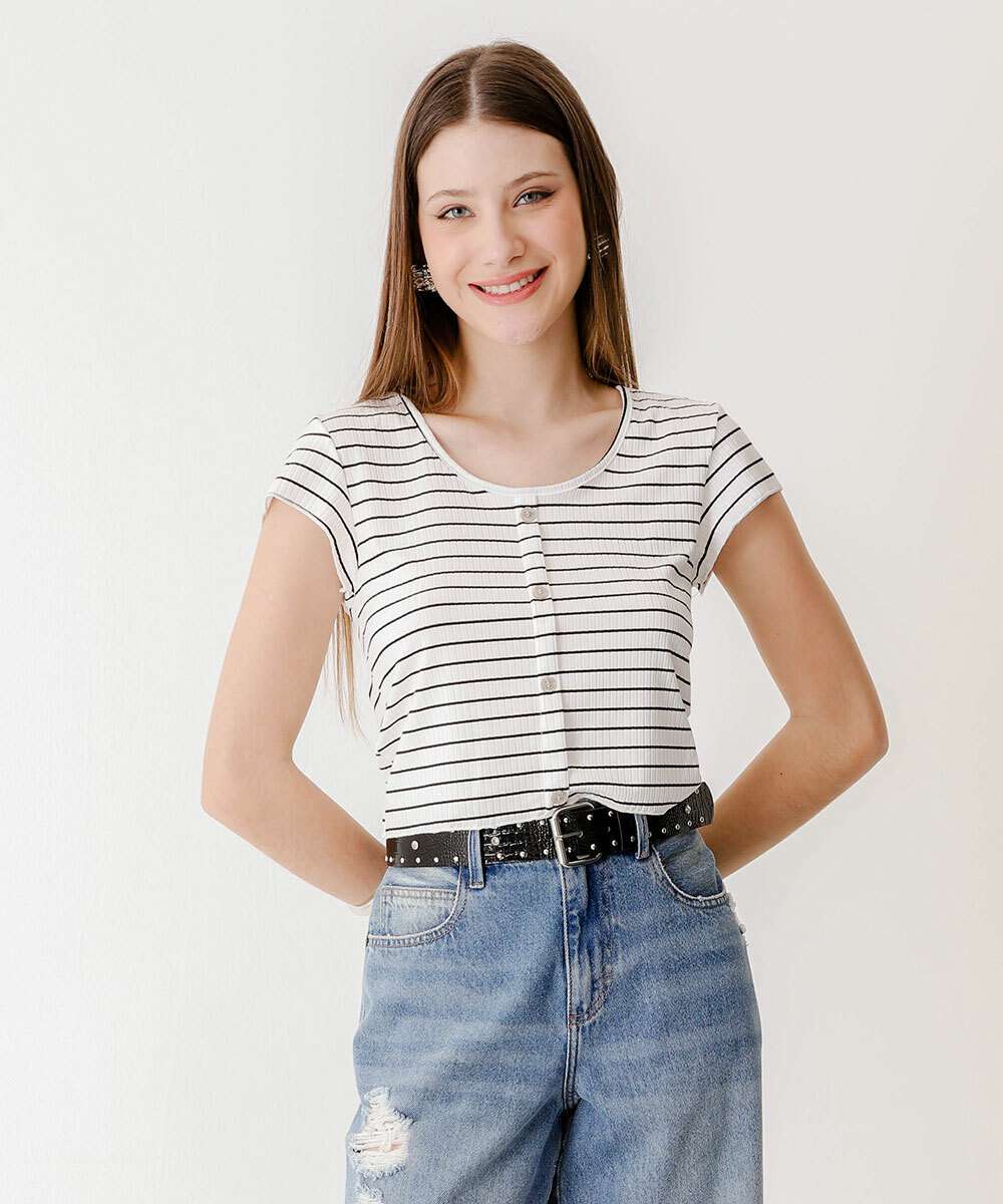 Blusa Feminina Canelada Listrada Botões Marisa
