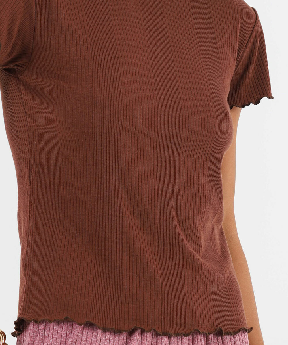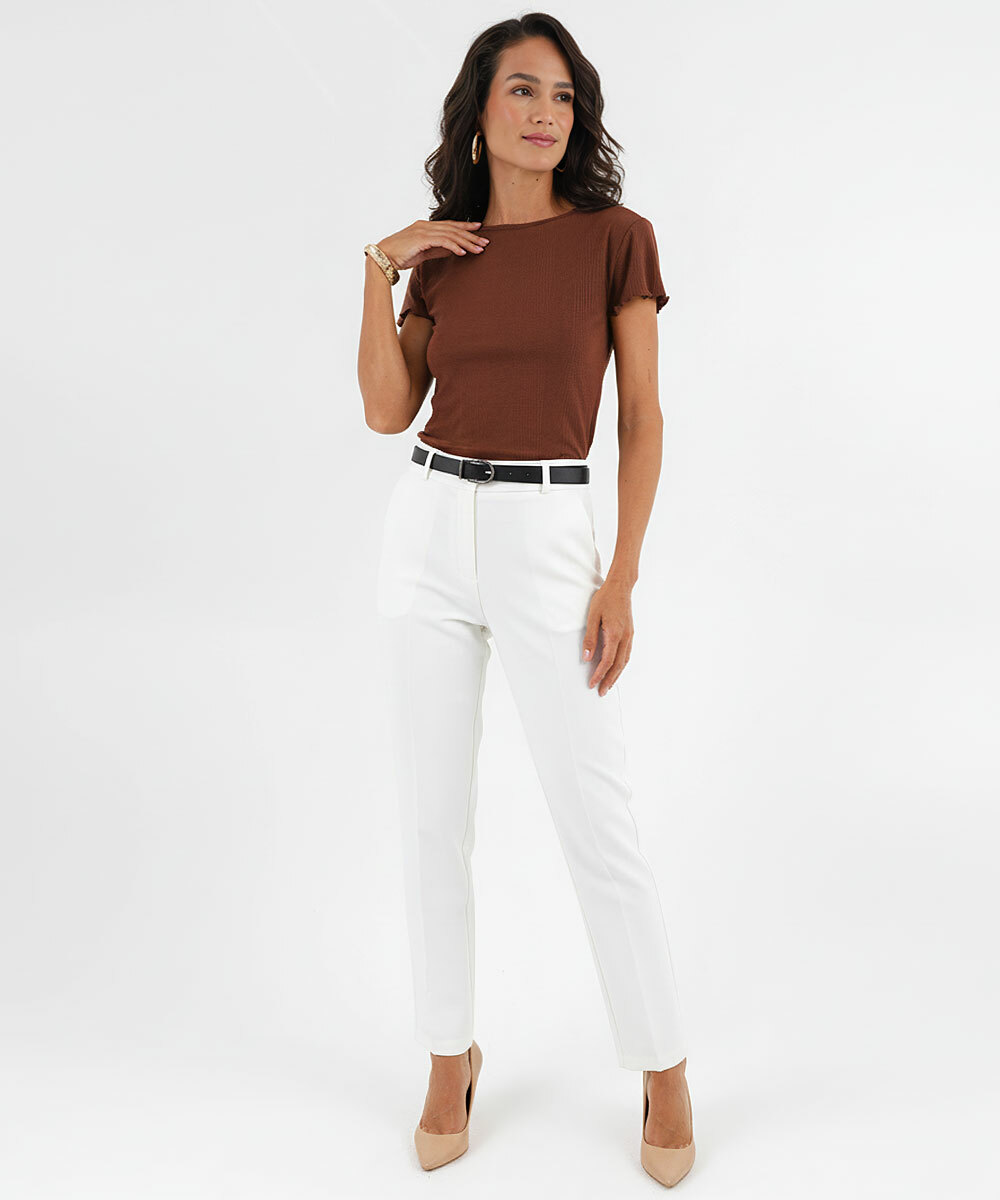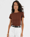 Blusa Feminina Canelada Manga Curta Marisa Marrom