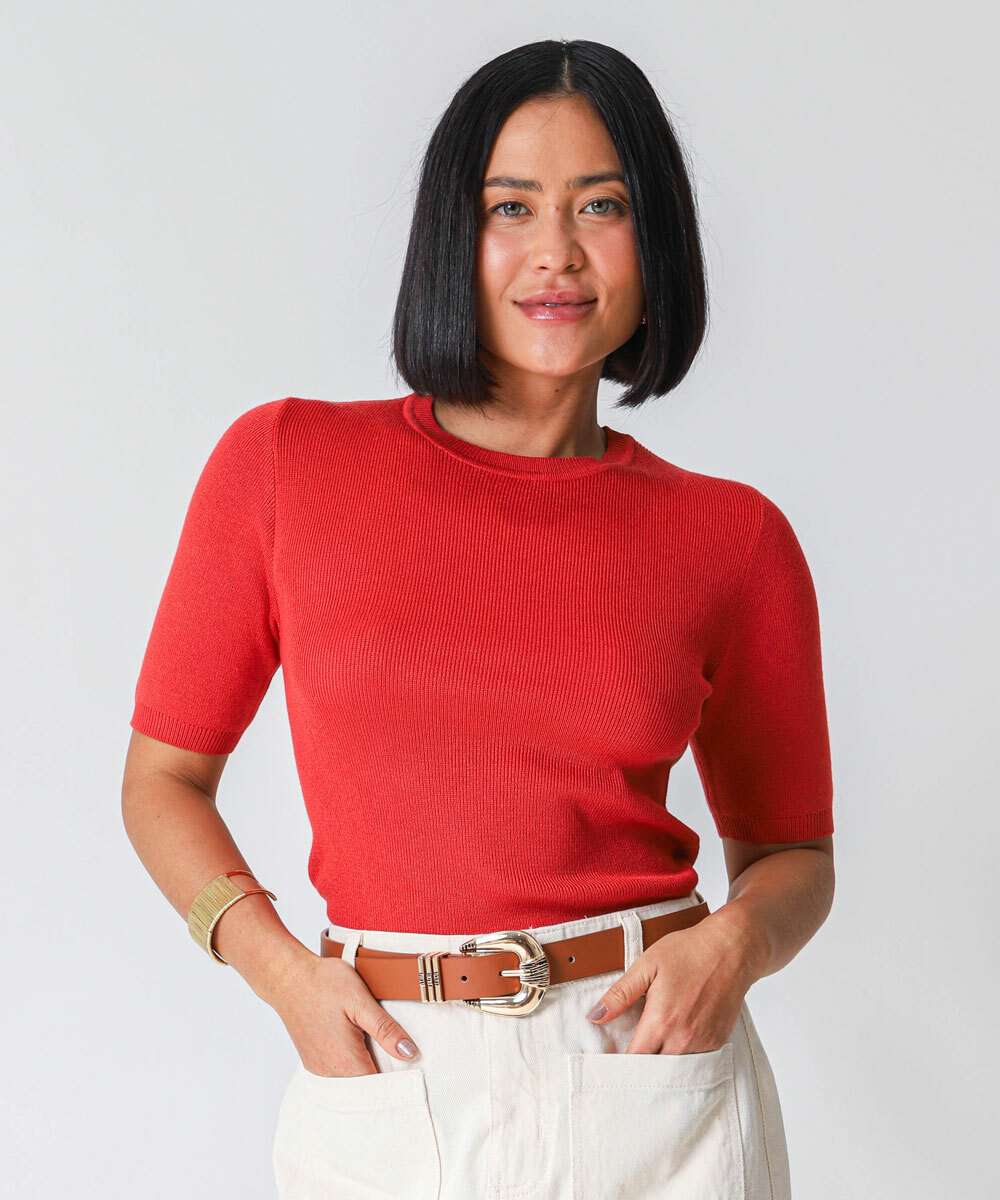 Blusa Feminina Canelada Manga Curta Marisa Vermelho