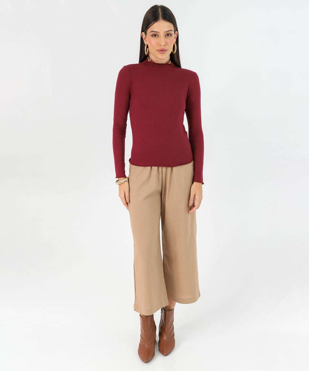 Blusa Feminina Canelada Manga Longa Marisa Vinho