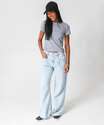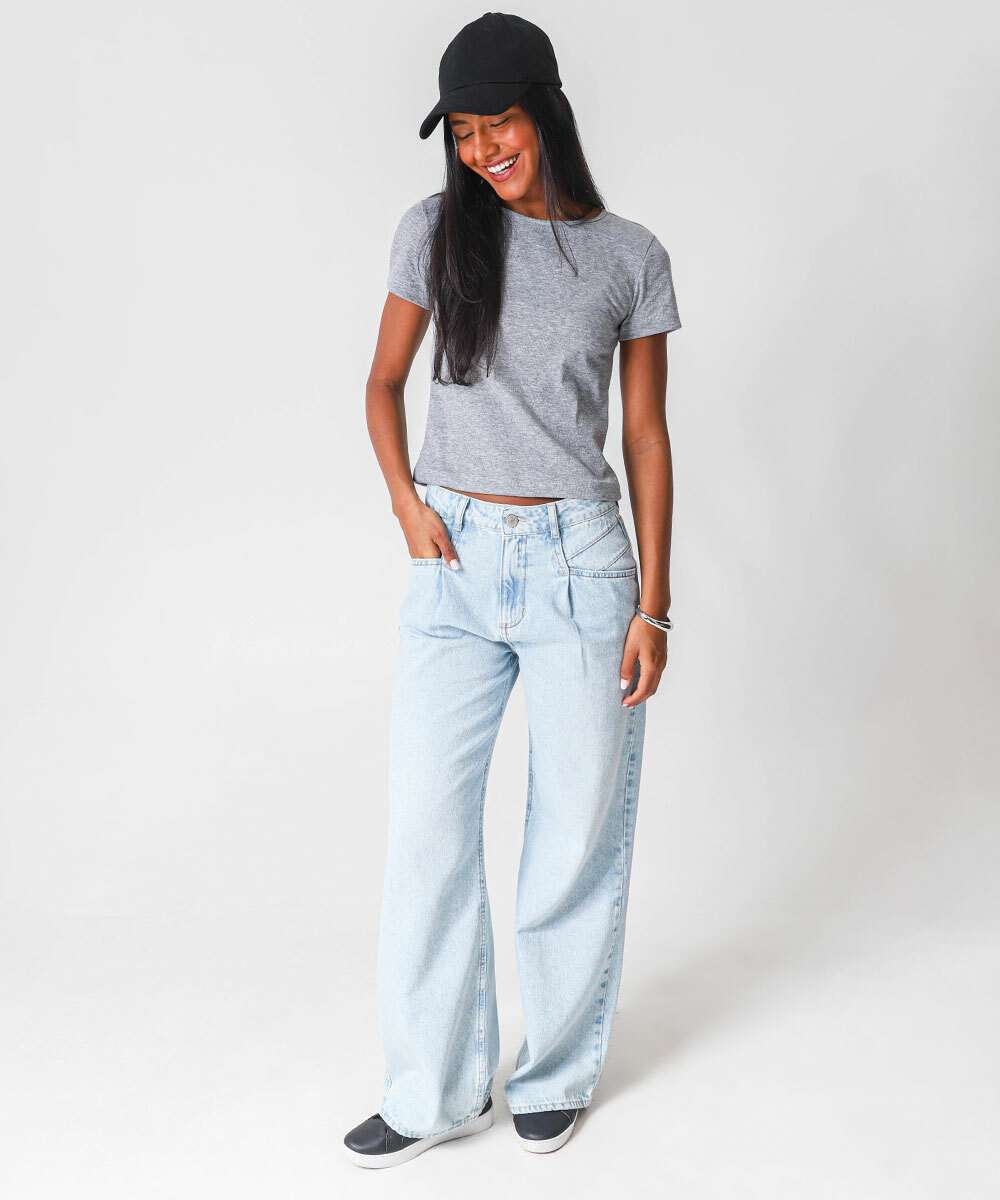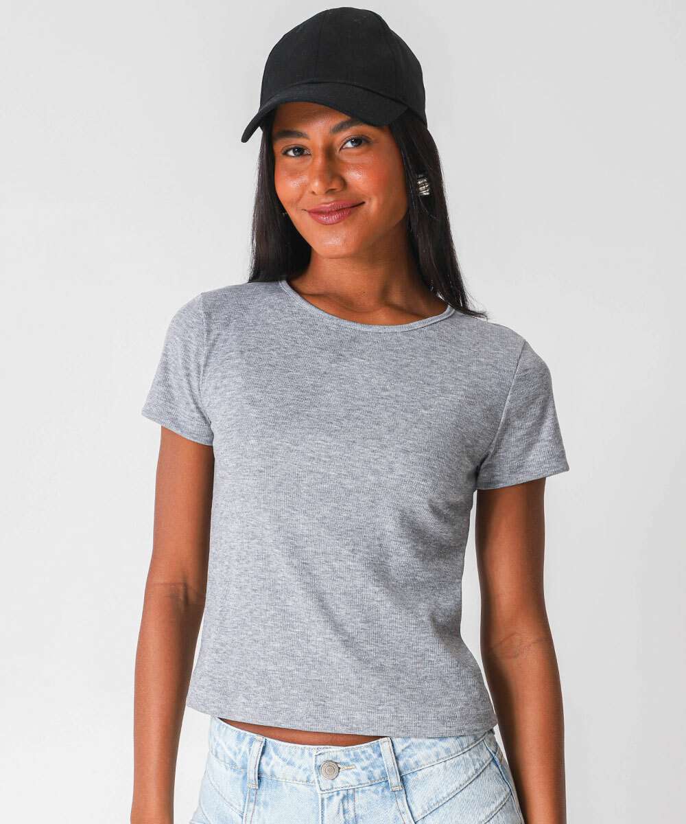 Blusa Feminina Canelada Mecla Manga Curta Marisa Cinza
