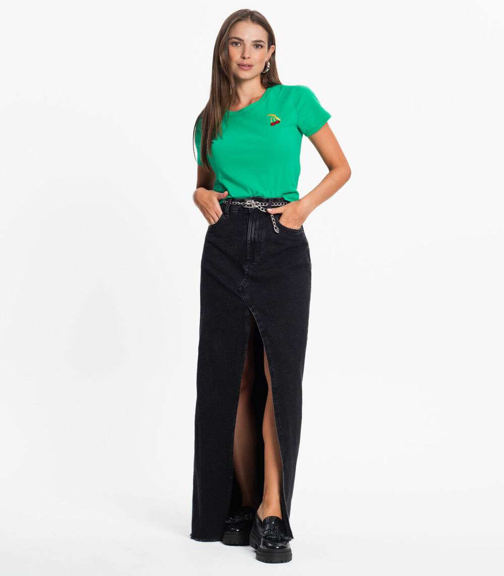 Blusa Feminina Manga Curta Com Bordado De Cereja, Adquira a nossa encantadora blusa de algodão com bordado de cereja! Esta peça delicada combina conforto e estilo, tornando-a perfeita para qualquer ocasião. O bordado de cereja adiciona um toque charmoso, elevando o seu visual. Vista-se com elegância e frescor. Adquira já a sua blusa exclusiva e destaque-se com um toque de doçura em seu guarda-roupa!