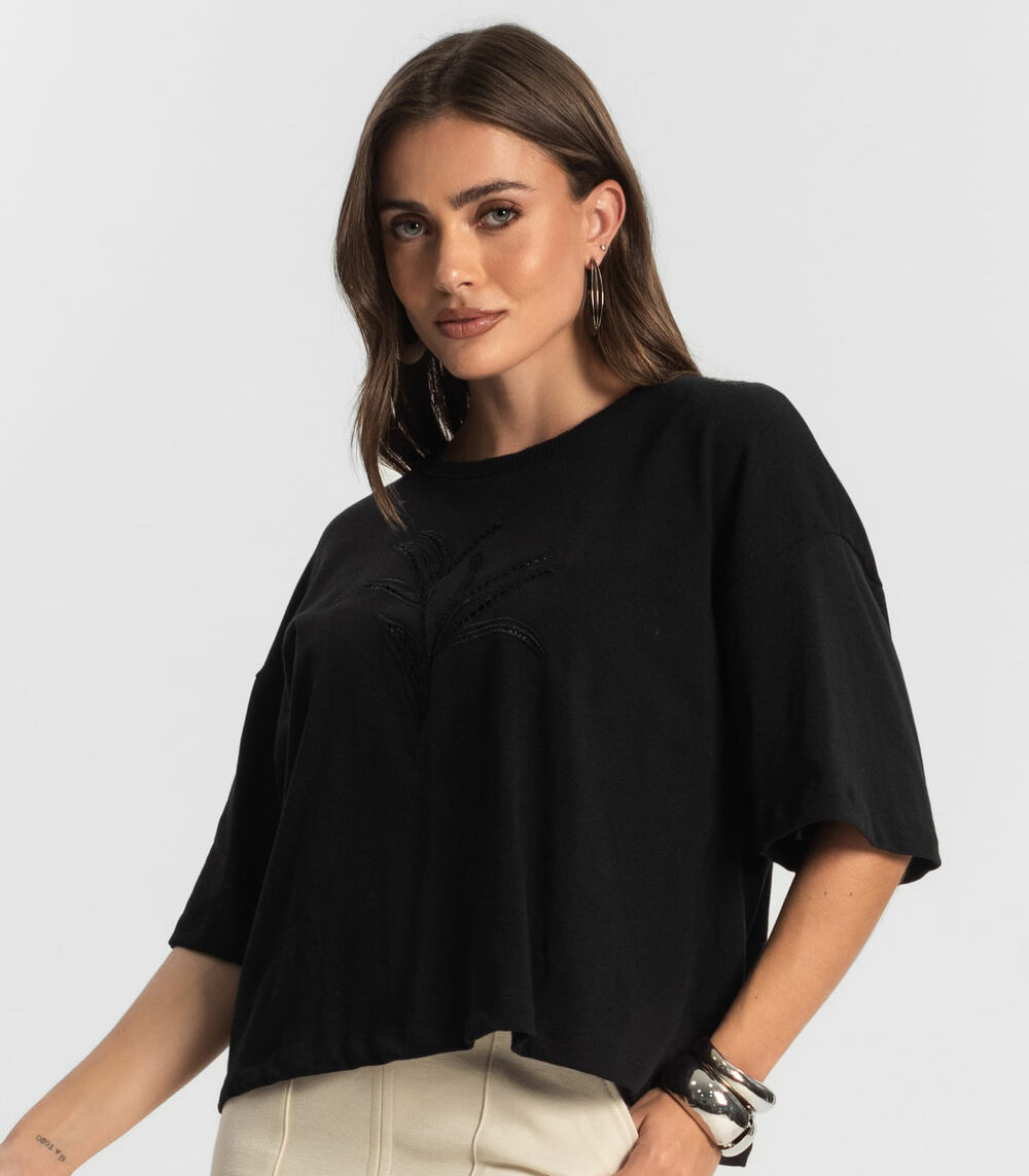 Blusa Feminina Com Bordado Endless Preto