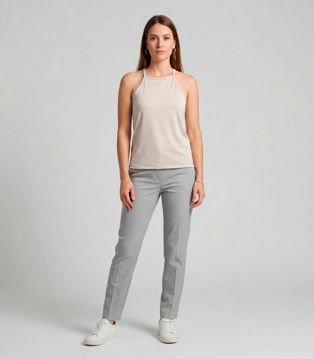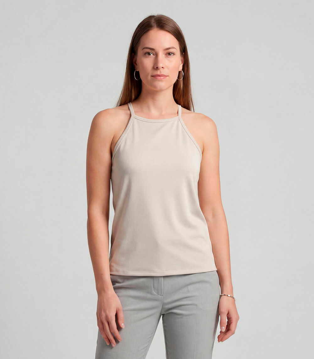 Blusa Feminina Com Cava Americana Infinita Cor Bege