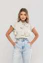 Blusa Feminina Com Laço na Gola e Manga Babado Marfim Salvatore