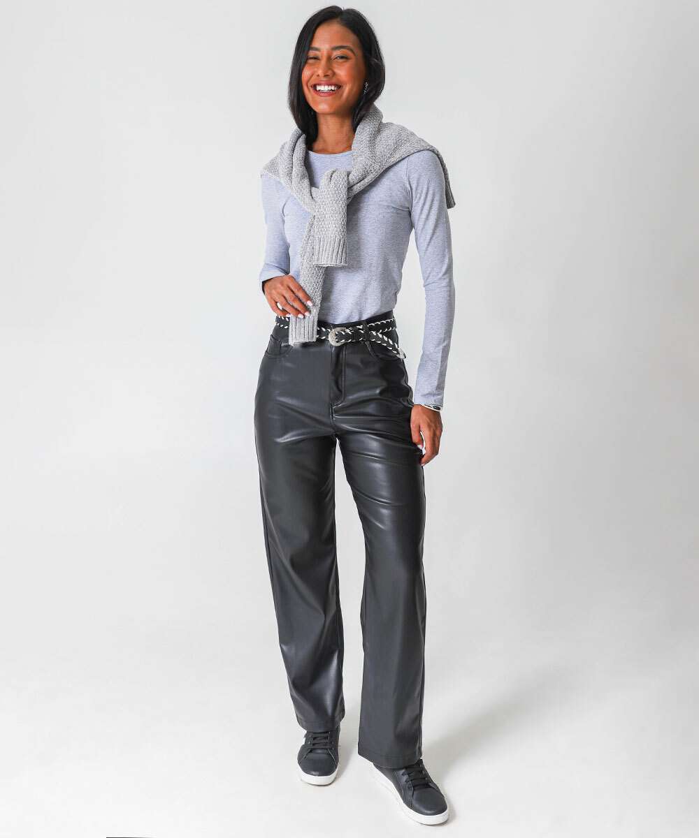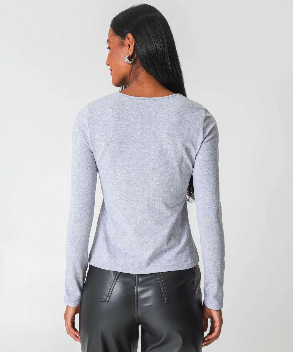 Blusa Feminina Cotton Manga Longa Marisa Cinza