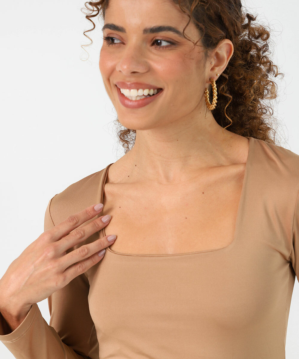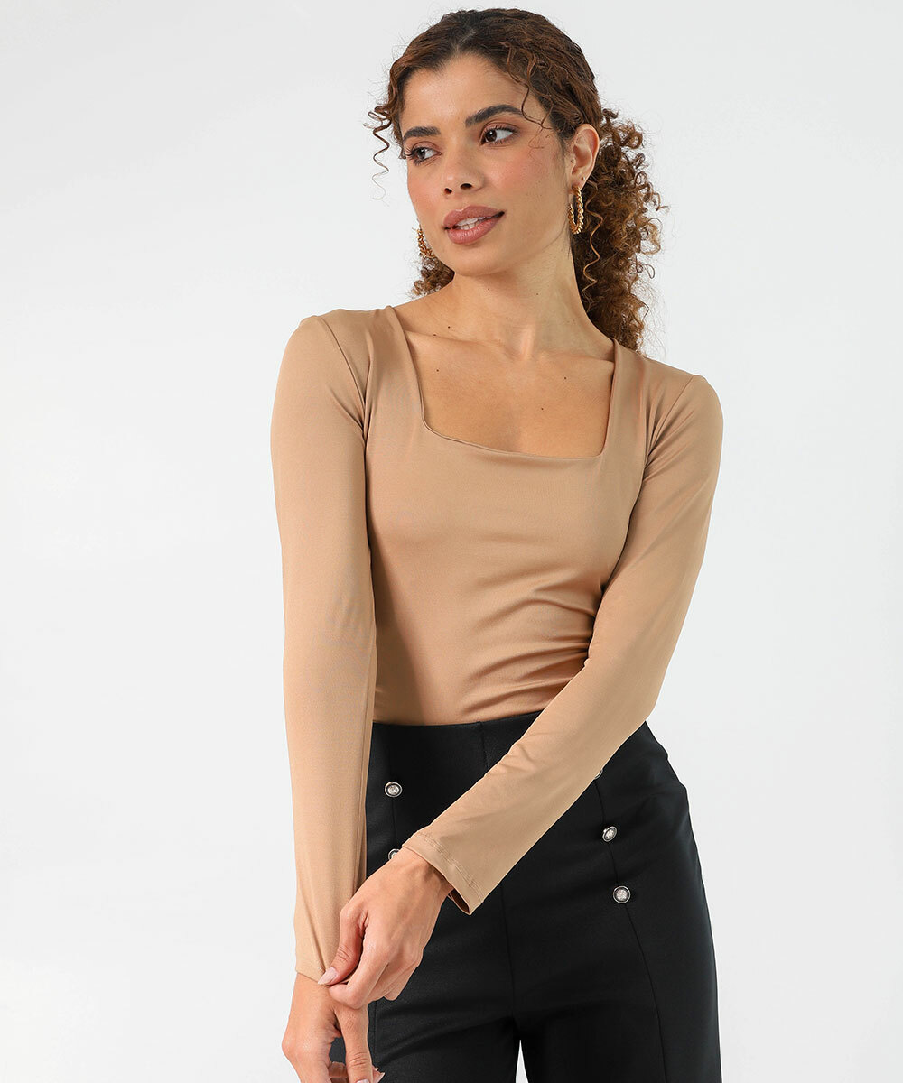 Blusa Feminina Decote Quadrado Manga Longa Marisa Marrom
