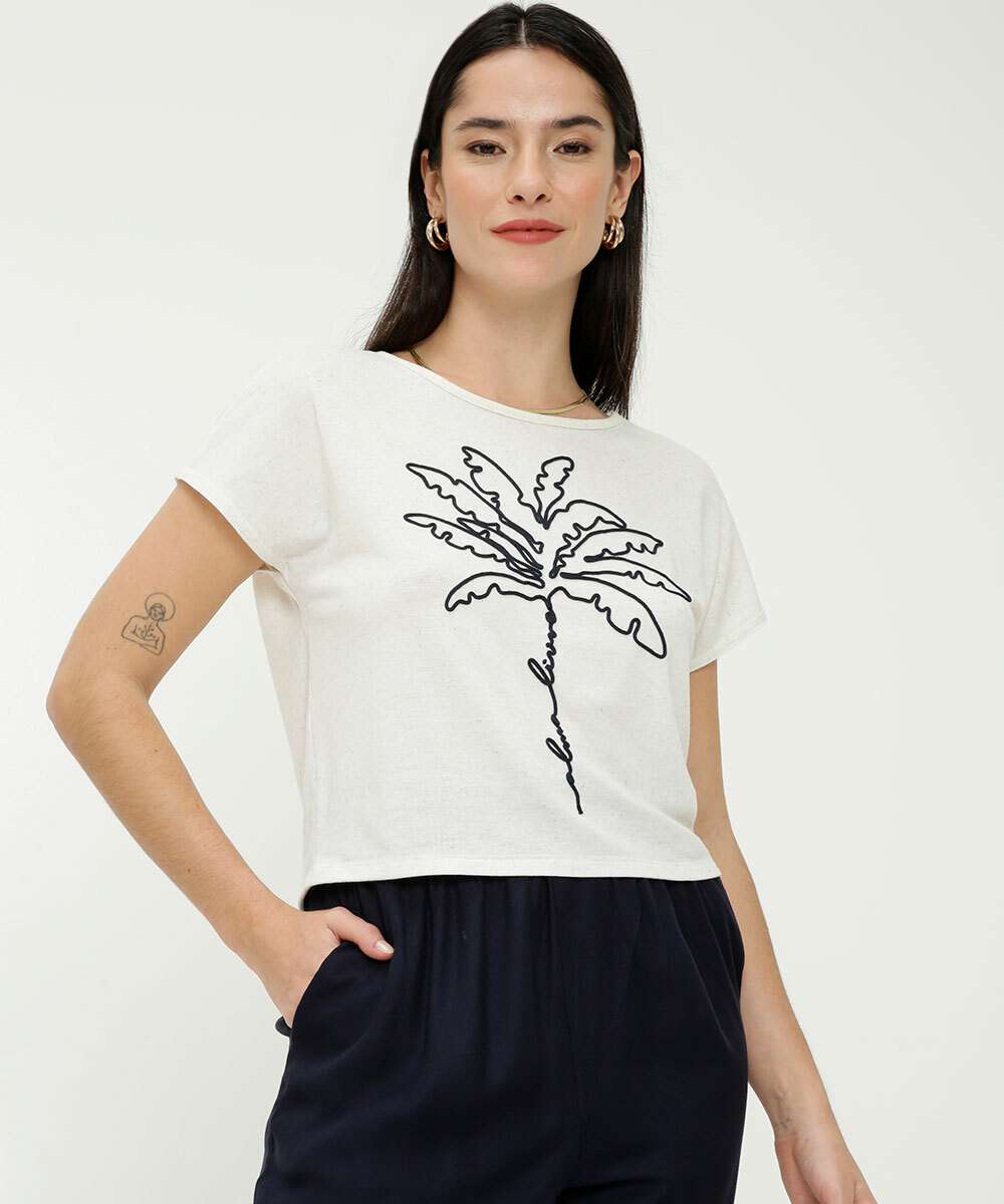 Blusa Feminina Estampa Coqueiro Manga Curta Marisa