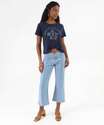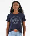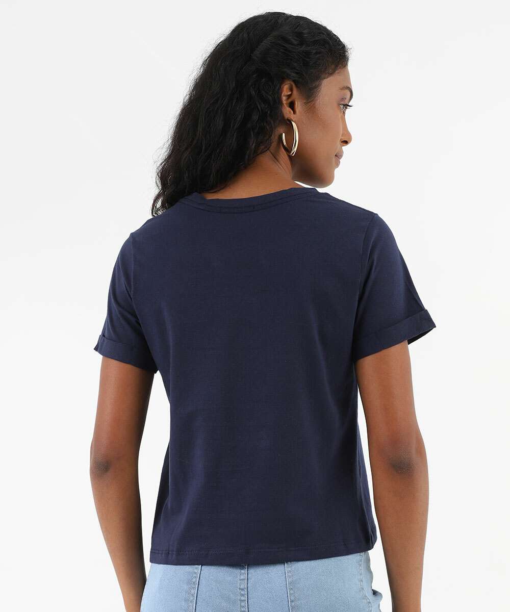 Blusa Feminina Estampa Flor Manga Curta Marisa Azul