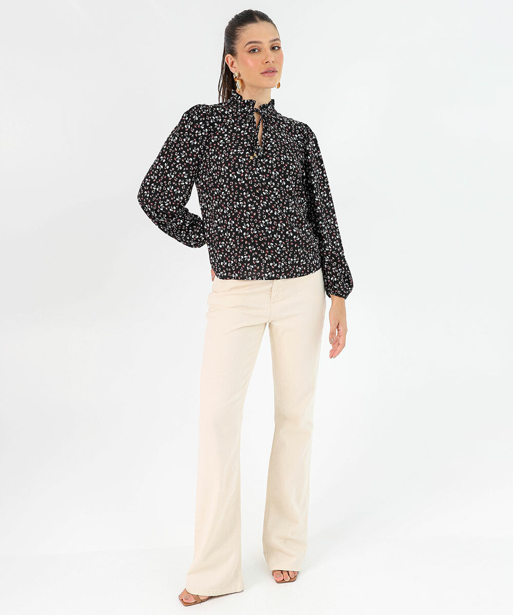 Blusa Feminina Estampa Flores Manga Longa Marisa