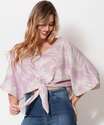 Blusa Feminina Estampa Folhas Amarração Manga 3/4