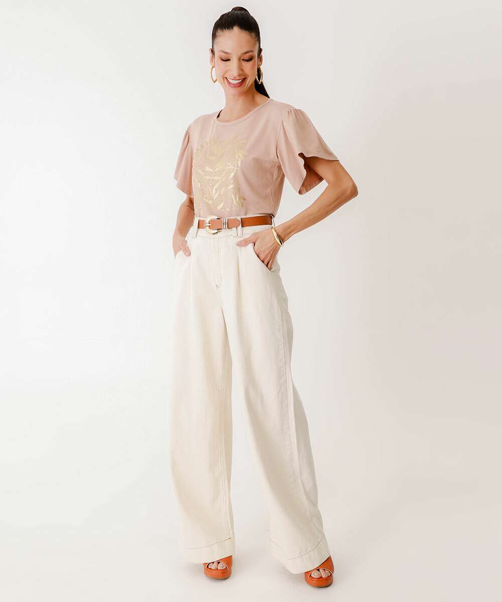 Blusa Feminina Estampa Folhas Manga Curta Marisa