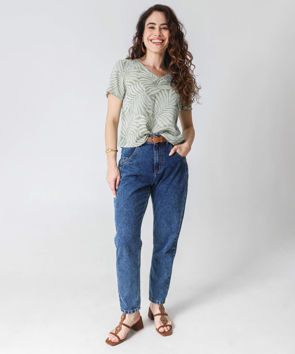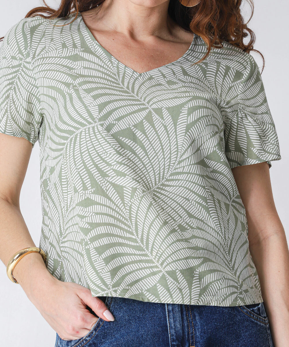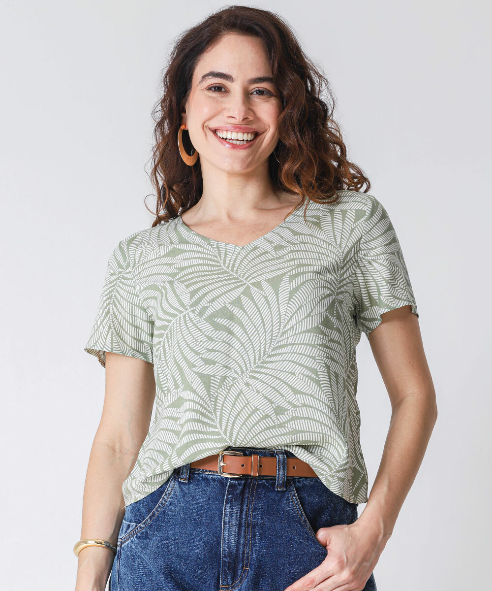 Blusa Feminina Estampa Folhas Manga Curta Marisa Verde