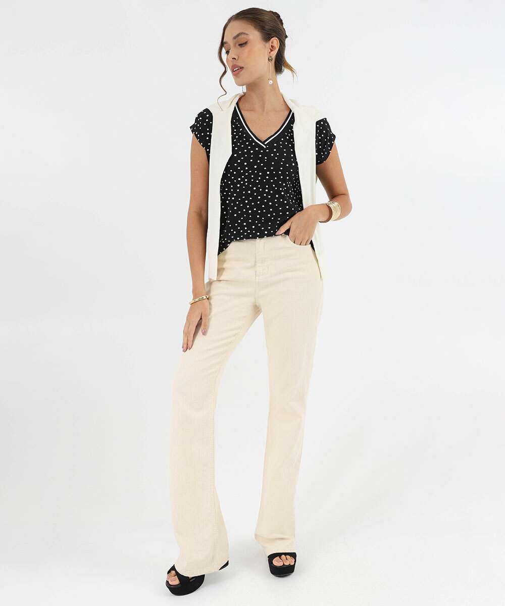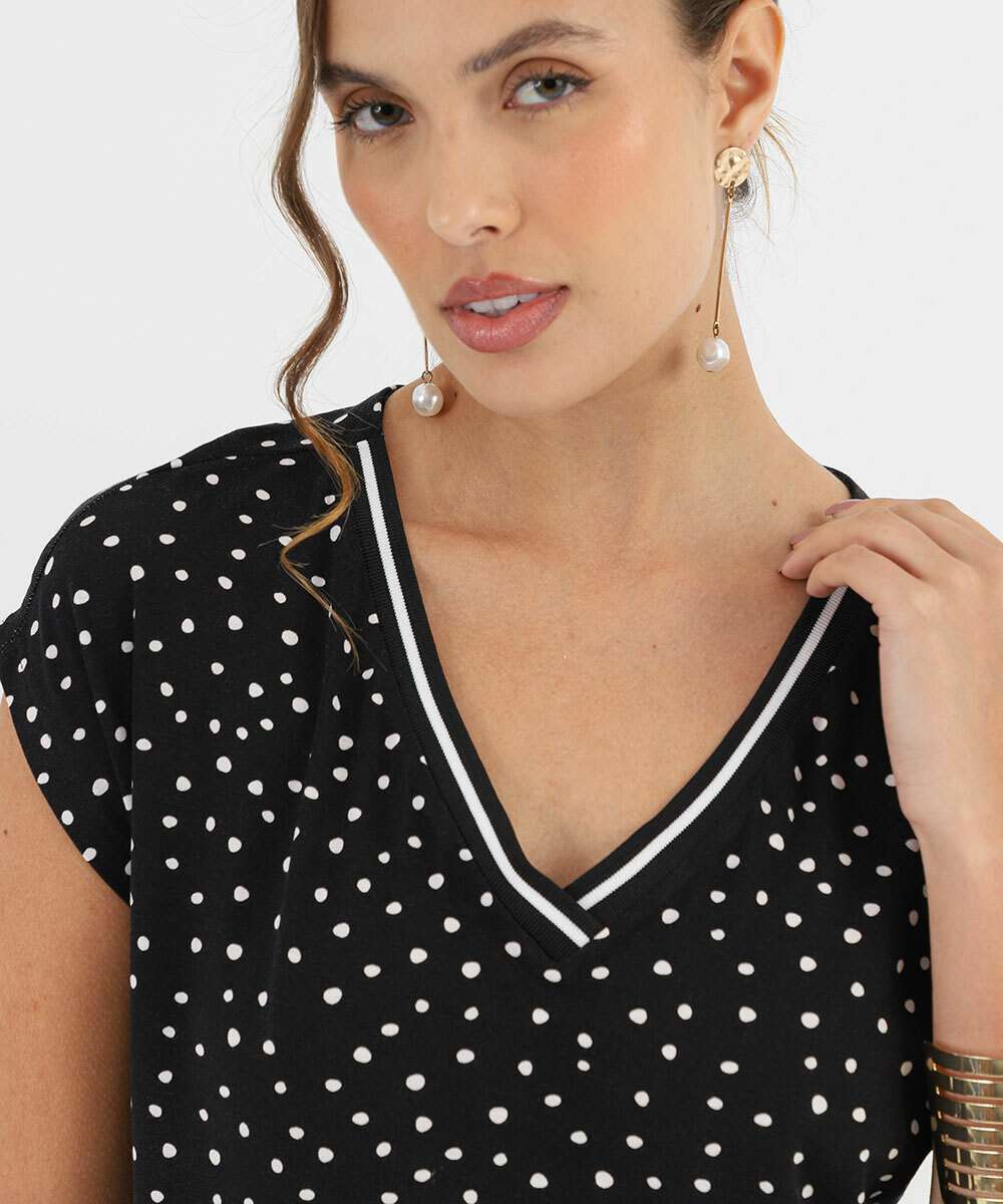 Blusa Feminina Estampa Poá Manga Curta Marisa Preto
