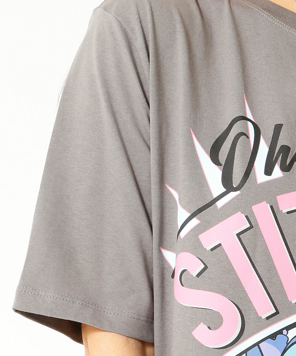 Blusa feminina confeccionada em malha algodão. Possui estampa frontal Stitch, personagen da Disney, decote redondo, manga curta, acabamento e costura no tom.