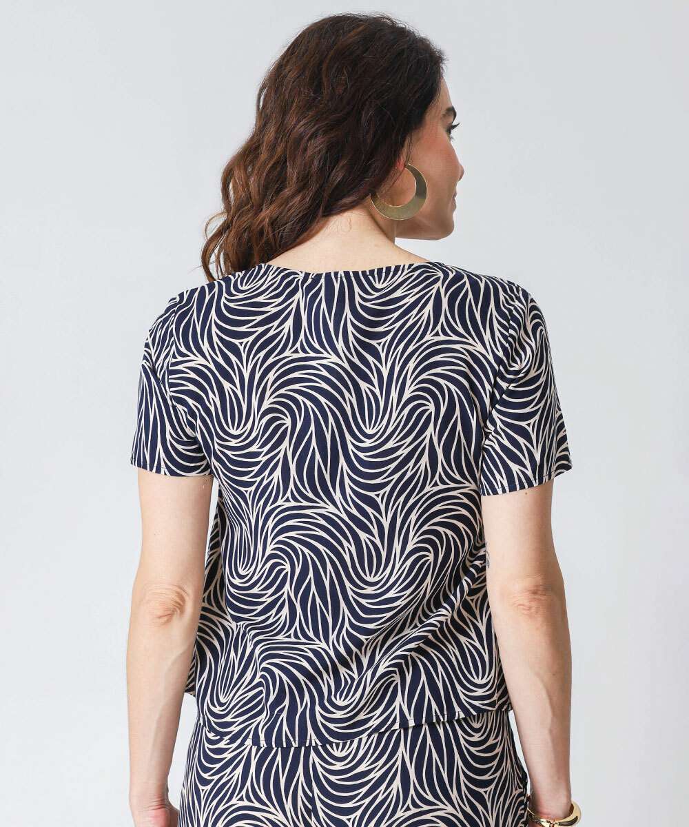 Blusa Feminina Estampada Manga Curta Marisa Azul