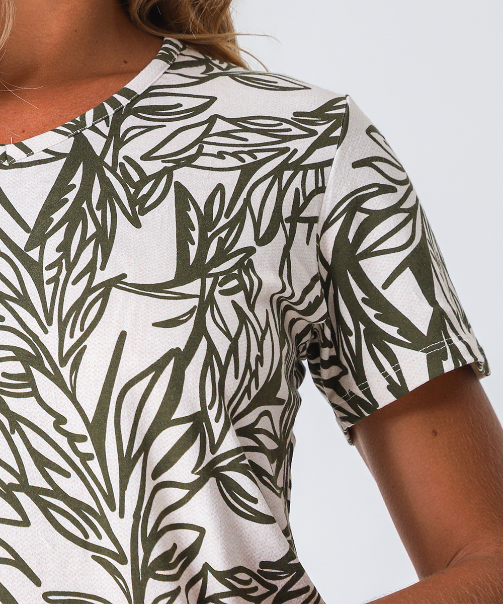 Blusa Feminina Folhas Manga Curta Marisa Off White