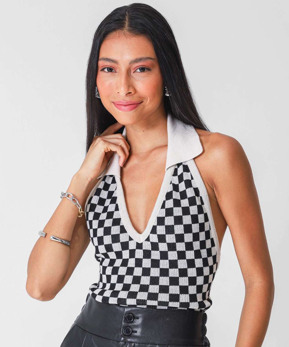 Blusa Feminina Frente Única Xadrez Marisa Preto