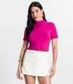 A Blusa Feminina Gola Alta Select é uma peça sofisticada e cheia de estilo, confeccionada em Viscotorcion, que garante conforto e leveza. Com mangas curtas e uma gola alta, ela traz um toque moderno e elegante ao visual. A modelagem cropped é perfeita para criar looks trendy, podendo ser combinada com saias ou calças de cintura alta. Uma escolha versátil para diversas ocasiões!