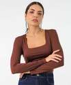 Blusa Feminina Lisa Manga Longa Marisa Marrom
