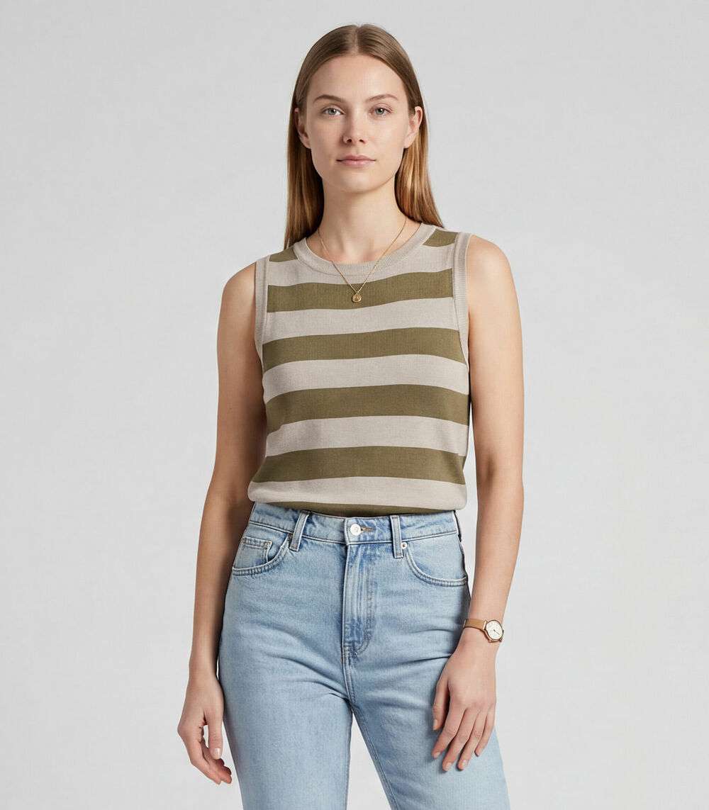 Blusa Feminina Listrada Em Tricot Sea Surf Bege