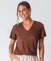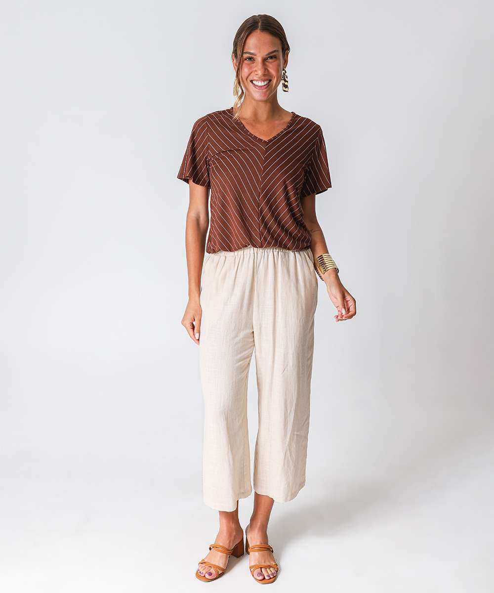 Blusa Feminina Listrada Manga Curta Marisa Marrom