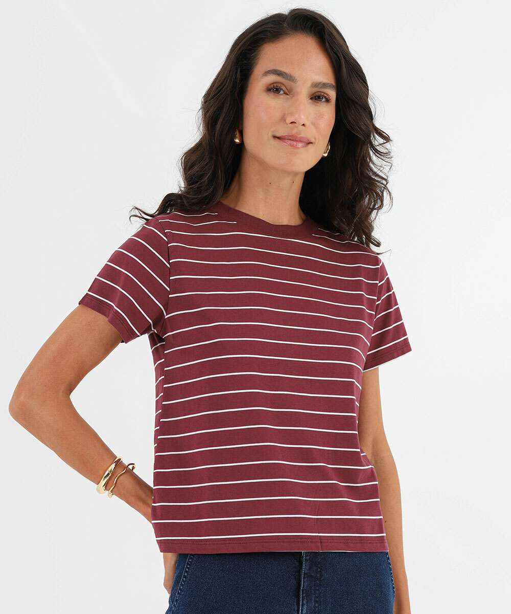 Blusa Feminina Listrada Manga Curta Marisa Vinho