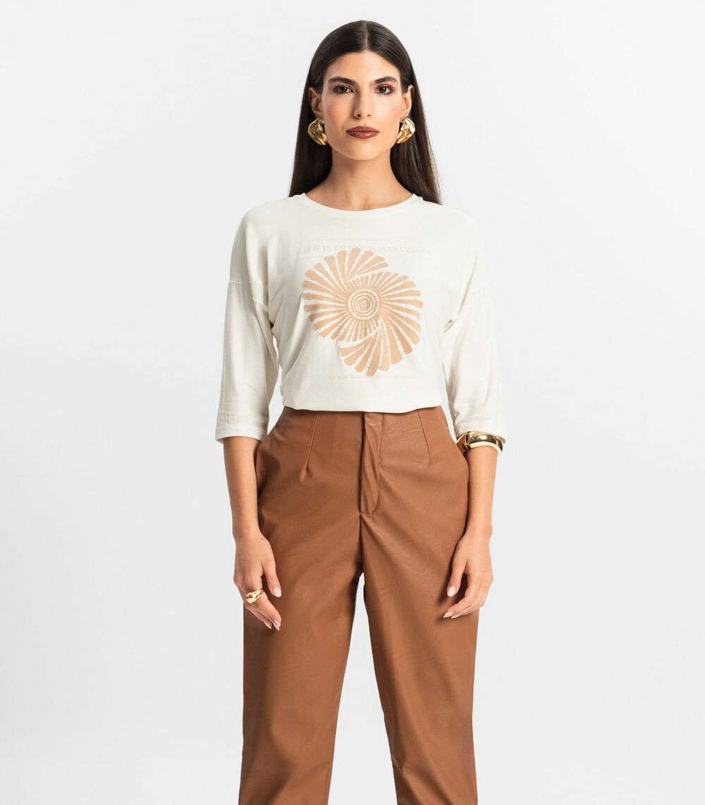 Blusa Feminina Manga 7/8 Viscose Endless Bege