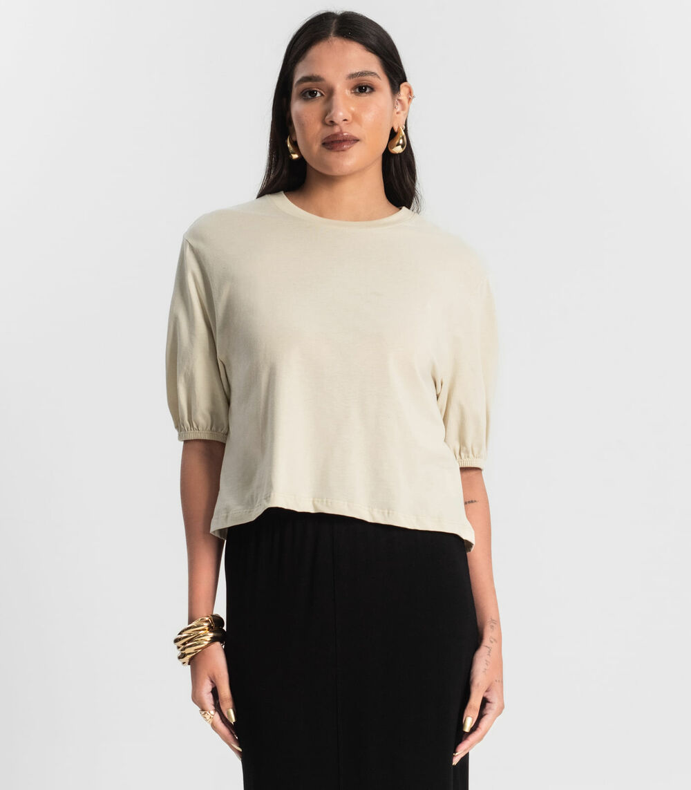 Blusa Feminina Manga Camponesa Rovitex Bege