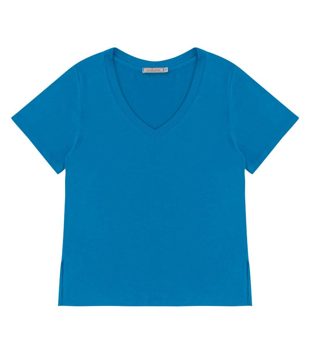 Blusa Feminina Manga Curta Decote V Endless Azul