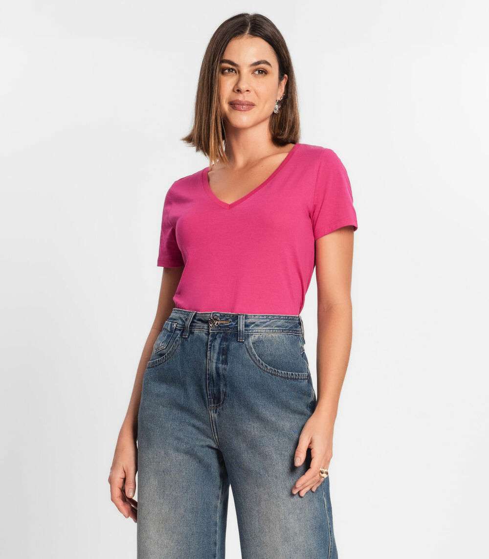 Blusa Feminina Manga Curta Decote V Rovitex Rosa