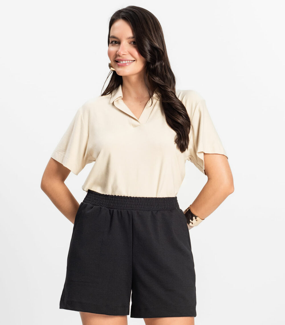 Blusa Feminina Manga Curta em Visco Rovitex Bege