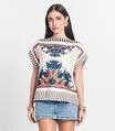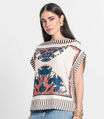 Blusa Feminina Manga Curta Estampada Donna Bege