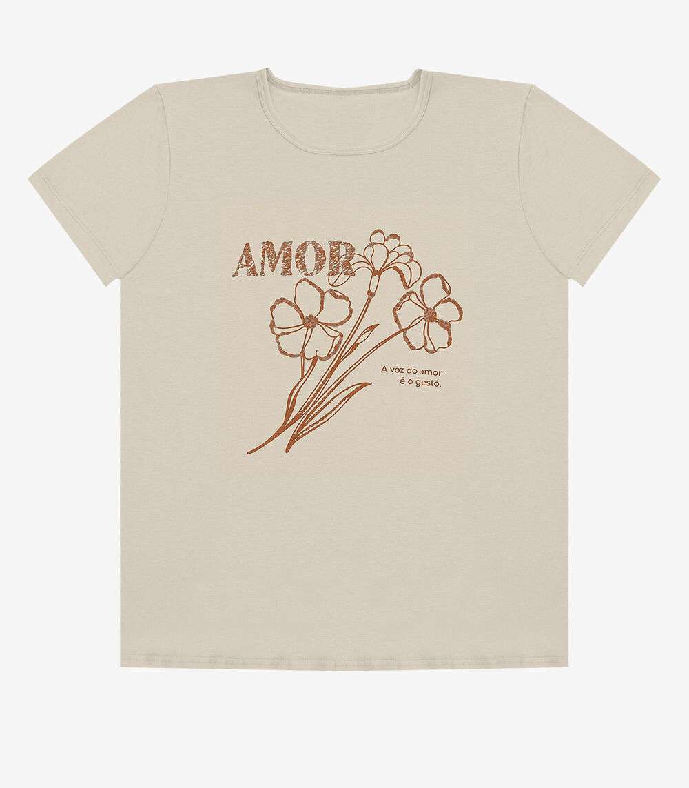 Blusa Feminina Manga Curta Estampada Select Bege