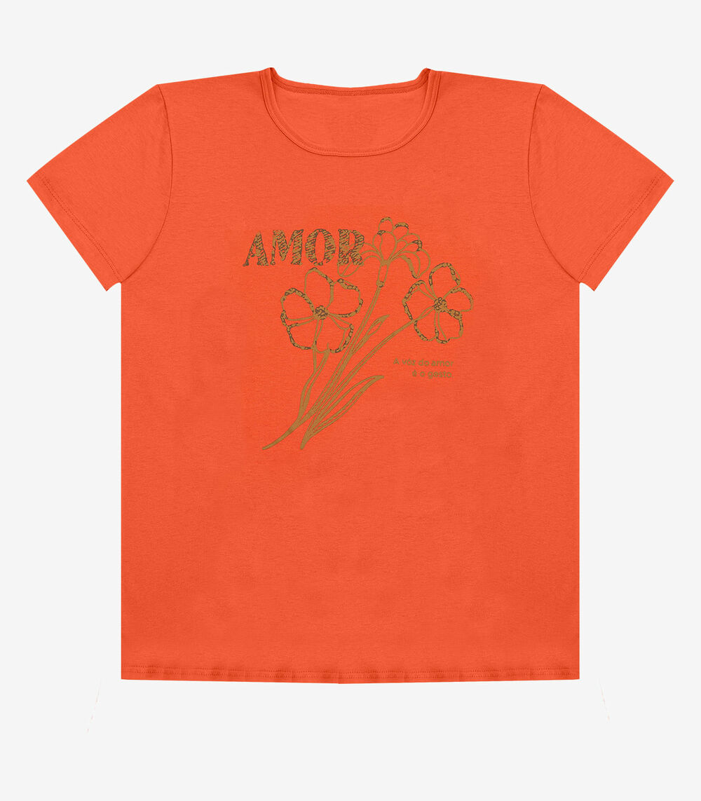 Blusa Feminina Manga Curta Estampada Select Laranja
