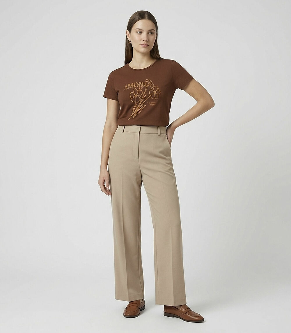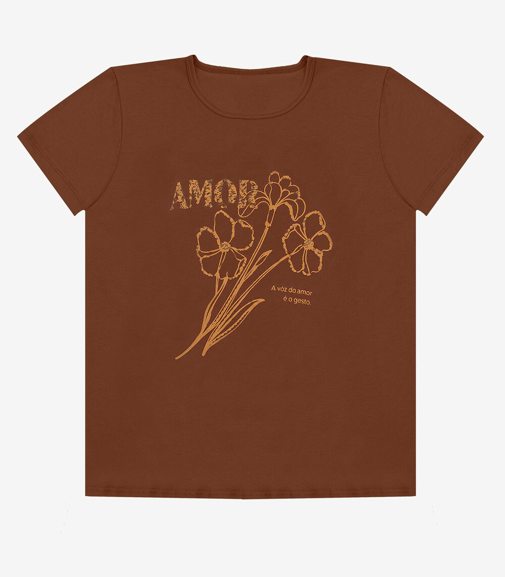 Blusa Feminina Manga Curta Estampada Select Marrom