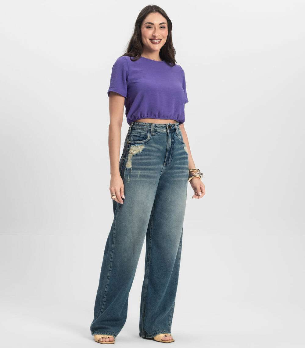 Blusa Feminina Manga Curta Infinita Cor Roxo